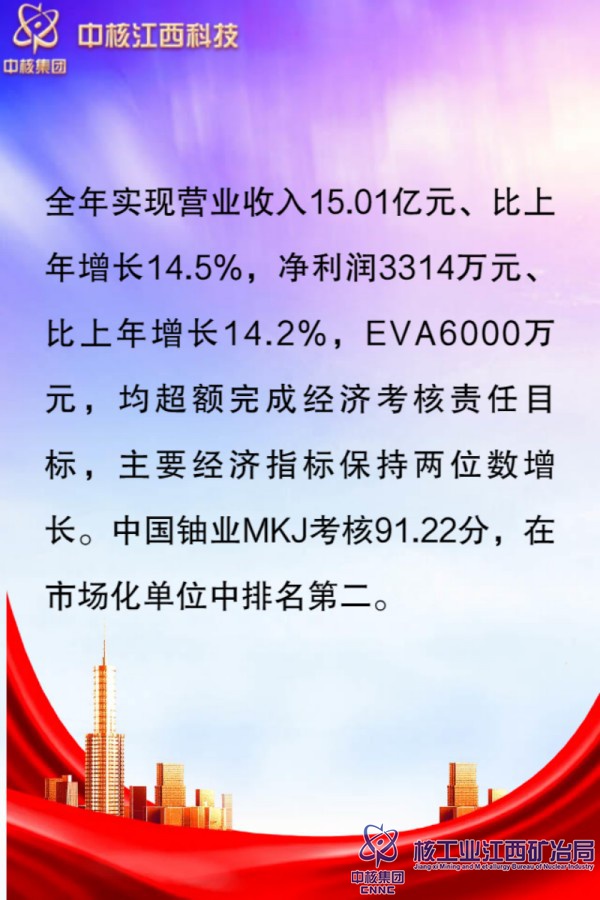 序常易,華章日新。轉眼間2022年已成為過去?;仡?022年,注定是不平凡的一年。在這一年里,中核(江西)礦冶科技集團有限公司(以下簡稱:中核江西科技)在中核集團和中國鈾業(yè)的關心支持下,在公司黨政班子的正確領導下,時刻銘記核工業(yè)的創(chuàng)業(yè)初心,永葆強核報國之志。公司上下勠力同心,勇毅前行,克服諸多不利因素影響,全面完成年度各項工作任務,在安全環(huán)保、項目開拓、改革發(fā)展、科技創(chuàng)新、精細化管理、黨的建設、文化宣傳、特困幫扶及鄉(xiāng)村振興等方面取得了可喜成績。